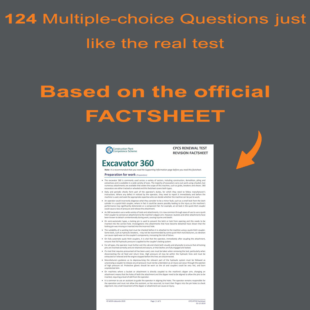 Whether you’re an Excavator 360° operator working with machinery above or below 10 tonnes, or an Excavator 180° operator handling equipment above or below 5 tonnes, renewing your CPCS Blue Card is a common goal. It’s your golden ticket to a thriving career in the construction industry. But, preparing for the NOCN RT59 Excavator renewal test can be a daunting task. That’s where our CPCS Blue Card Renewal Mock Practice Test comes to the rescue.