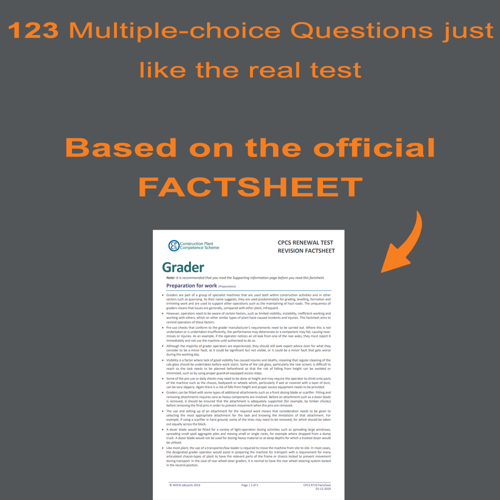 - Review the NOCN CPCS RT19 Grader Factsheet: While the mock test provides a streamlined review, going back to the original factsheet is crucial for a deeper understanding of the subject matter.