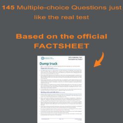 Our Dump Truck Renewal Practice Exam PDF provides 145 questions in the same multiple choice format you’ll see on the actual renewal exam. The questions cover all key topics, regulations, and procedures that apply specifically to the dump truck. Correct answers are provided so you can immediately assess your performance.